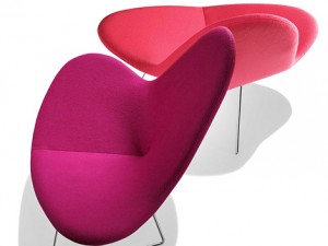 Poltrona estofada com forte impacto visual que lembra pétalas de flor ,